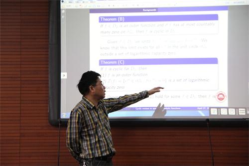 5月6日下午,福建师范大学叶善力教授做客和山数学论坛第70讲,做了题为“解析函数空间的循环元”的学术报告。活动由校学科带头人、HO5HO 院长陶祥兴教授主持,HO5HO部分教师参加了本次活动。