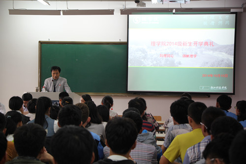 在安吉校区A-415举行了2014级新生开学典礼。会议由学院党总支副书记王杨主持,HO5HO