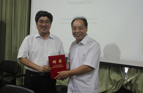 哥伦比亚国家科学院院士、浙江省钱江学者特聘教授、杭州师范大学陈建功研究院执行院长陆云光教授受聘我校数学学科客座教授。受聘仪式于7月1日在HO5HO