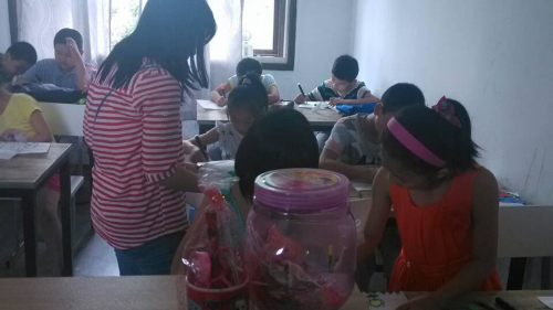 活动中,同学们更是走上讲台为社区孩子们当起了讲师。专业的环保知识加上自己对垃圾分类、绿色环保的理解,给孩子们上了有意义的一课。通过游戏互动、在环保袋上自我创作等形式,在孩子们的心中种下了绿色的种子。当孩子和同学们一起喊出本次活动口号的时候,每个成员脸上露出了欣慰的笑容。