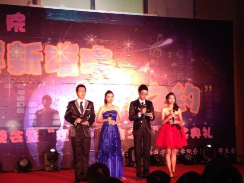 岑岗首先为晚会致辞,他向各位来宾表示热烈欢迎,对到场的师生表示衷心祝福,并祝愿同学们在学习、生活中不断进步,不断取得好成绩,涌现出更多的“理学璀璨之星”和“科院之星”。本次晚会隆重推出荣获2013年度“理学璀璨之星”,他们分别是信计112班陈孜、信计112班茅梓成、信计101班高婷婷、物理102班孙妃佳、物理102班叶辅溶和校友翁异静(原信计062班、现南昌大学读博)。他们怀揣对知识的渴望,对学习的热情,踏着坚实的步伐,向自己的目标奋进,他们是学院的骄傲。主持人热情洋溢的介绍后,全场报以热烈的掌声。作为颁奖嘉宾的校友孙伟伟也即兴讲述了自己就业、创业的体会,给大家留下来深刻的印象。会上还为“理学十佳示范寝室”进行了颁奖。