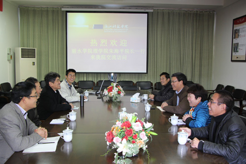 近日, 丽水学院HO5HO 院长朱海平教授一行4人来HO5HO交流访问。院长岑岗教授、院长助理骆钧炎博士、物理系主任潘卫青博士等接待了朱院长一行.