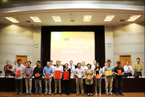 会上,校党委书记王建华代表学校向全体教职员工致以节日的问候,并发表了热情洋溢的讲话。会议还为在过去一年中取得优异成绩的教师代表颁发了荣誉证书,HO5HO多位教师上台领奖。其中,陶祥兴获省师德先进个人;王长荣、朱婉珍获省高校优秀教师;骆钧炎获浙江省高校第七届青年教师教学技能竞赛优秀奖;雷建光获2013校优秀主讲教师;陶志雄老师从教三十年。