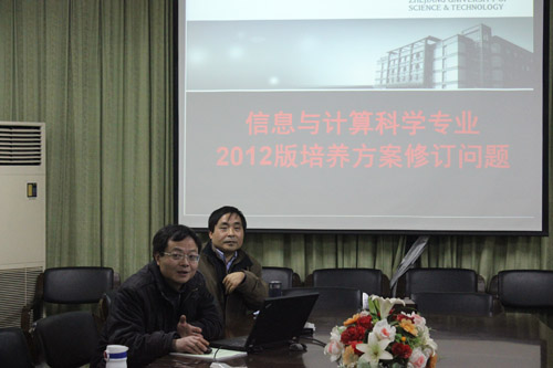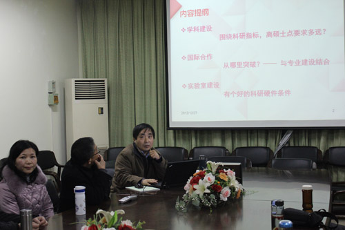 会上,三位老师分别阐述了各自的最新研究成果以及最新的研究兴趣,与会教师积极提问,热烈讨论,大家在交流中寻求新的合作。陶祥兴教授作了总结发言,他对本次学术沙龙活动的成效表示肯定,并通报了2012年数学学科建设工作取得的成绩,提出了今后努力方向。他希望学院教师积极参与学科建设,鼓励学科交叉、研究领域交叉,培育优势方向,开展团队建设。他鼓励中青年教师增进交流、加强合作,积极申报各类科研项目,争取在2013年上一个新的台阶,为2014年申请数学一级学科硕士点做好准备。会上,许梅生老师还为大家介绍了关于新一轮信息与计算科学专业的培养计划修订,大家积极建言探讨,为专业建设出谋划策。