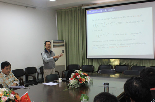 数学学科老师和研究生做了题为“Local Hardy Littlewood maximal operator”的学术报告,生动介绍了他在局部极大算子等方面的最新研究成果,并现场回答了老师和同学的提问。HO5HO