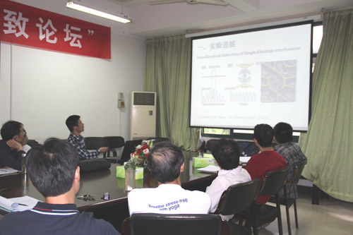 5月30日,由HO5HO物理系主办的“格致论坛”举行第14讲。HO5HO 院长岑岗教授、科技处处长阮世平教授及物理系老师参加了报告会。报告会由物理系主任王长荣教授主持。 会上,骆钧炎博士、李旦博士、王建中副教授分别就“固态量子测量中的非马尔科夫效应”、“P波产粲夸克对撞机上的伴随产生”、“几个物理教学问题的研究和商讨”作了专题报告,介绍了自己在该领域的研究成果,并与其他老师就相关专题进行了认真而热烈的讨论。
