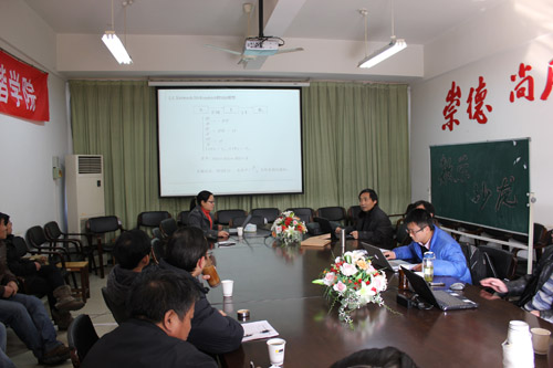 会上,各位老师分别阐述了各自的最新研究成果以及最新的研究兴趣。与会教师热烈讨论,积极提问,大家在交流中寻求新的相互合作。报告会结束后,校学科带头人、学院副院长陶祥兴教授作了总结发言,他对本次学术沙龙活动的成效表示肯定,并通报了2011年应用数学学科建设工作取得的成绩,提出了今后努力方向。他希望学院教师积极参与学科建设和申硕支撑学科建设;鼓励学科交叉、研究领域交叉,培育优势方向,开展团队建设;鼓励中青年教师增进交流、加强合作,积极申报各类科研项目,争取在2012年上一个新的台阶。