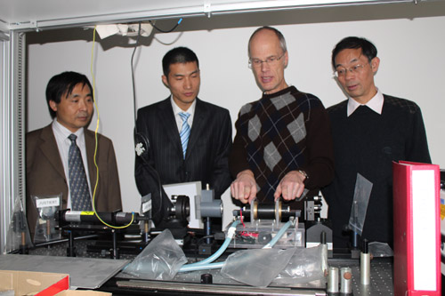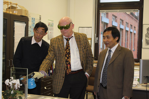 在德期间,访问交流小组亲切看望了在该校学习的HO5HO“2+3”应用物理专业学生,并同他们进行了几次座谈,了解了他们的学习和生活情况,听取和尽可能地解决他们提出的问题。根据工作安排,交流小组还与该校物理学科的教师进行了多次会谈交流,对方向HO5HO交流小组教师介绍了他们的办学特色,教学和科研近况。陶祥兴也向德方同仁介绍了HO5HO情况与办学特点。交流小组在德方教授陪同下,认真参观了各位教授的工作室和实验室,对德方的实验工作环境,特别是对激光工程方向的科研实验团队协作留下了深刻的印象。双方还就加大科研合作,“2+3”项目的进一步深化与拓展,以及教师与学生的互动交流等问题进行了深入的研究与探讨,在很多问题上取得了共识和一致意见。