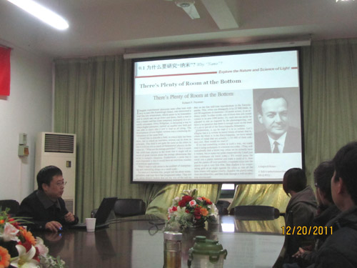12月20日下午,学院“格致论坛”第十二讲在A4-222会议室举行。浙江大学博士生导师童利民教授应邀为论坛作学术交流报告。报告会由学院物理系主任王长荣教授主持,HO5HO 院长岑岗教授、物理系和实验中心相关教师参加了本次论坛。参加报告会的还有部分高年级学生。