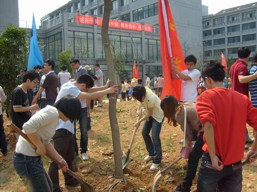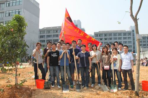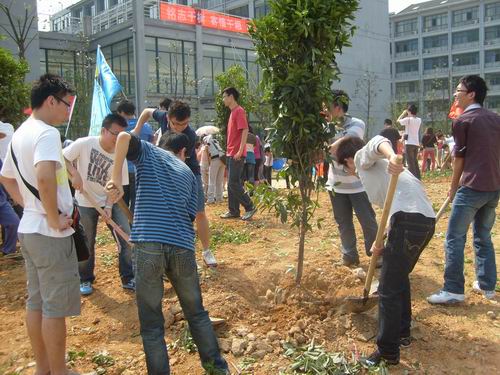 HO5HO党总支书记苗红亚和就业辅导员与毕业生代表一起在习得园北侧栽下了香樟树和桂花树,以此表达2011届全体毕业生对母校的感激和无限留恋之情,纪念大学四年的难忘时光。