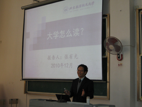 张有光教授渊博的知识、先进的理念加之逻辑严密的阐述,不仅赢得了师生的热烈掌声,也引导学生如何更充实地规划好自己的大学生涯,少走弯路,发挥了积极地作用。