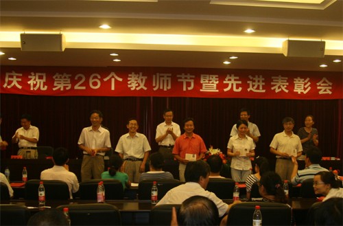 荣获2009年校“三育人”先进集体;王杨获2009年浙江省高校优秀辅导员称号;李祖樟获2009年校“三育人”先进个人。从教30年教师为王长荣、王建中和李小梅。王长荣教授还在会上作了发言。