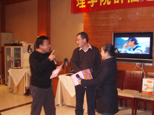 聚餐会由分工会主席胡月、辅导员王杨主持。席间,老师们频频举杯,互相问候,气氛热烈、和谐。用餐过程中,校领导徐志平、校学科带头人陶祥兴和有关领导分别为大家抽取了特等奖和一、二、三等奖。 活动加深了教职工相互间的了解,也增进了友谊。