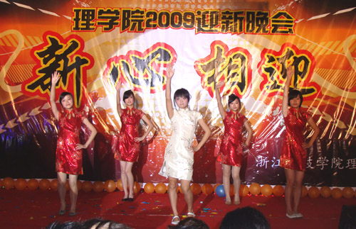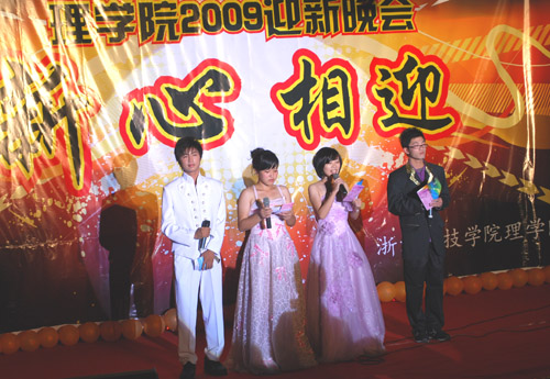 “新心相迎”2009迎新晚会在A4-122隆重举行。校党委书记徐志平、校党委副书记胡浙平、校学生处、团委负责人应邀出席晚会。HO5HO