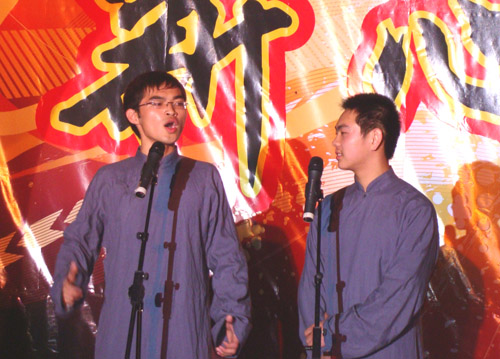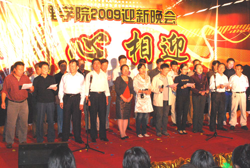 师生的默契,也感受到了学院的活力。《I Believe》的优美旋律从金黄色的萨克斯中迸发出来,荡漾开去,在场的观众久久陶醉在这美妙的乐曲声中。由09新生表演的相声《你好忙》,在搞笑的同时也不乏深意,现场观众如潮水般的掌声也是对演员最好的赞誉。晚会上,由学院党政负责人领衔,二十多位来自数学、物理系的教授、博士、班主任等老师演唱的“大中国”,更是把晚会热烈气氛推向高潮。歌声不仅代表全院师生对祖国母亲诚挚的祝福,也充分表达了HO5HO
