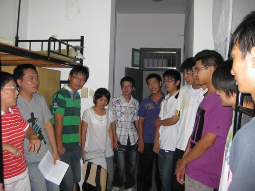 走访中,院学生会学习部部长、08年省高数竞赛一等奖获得者陈中师,以学长的身份,现身说“学”,向新生们介绍了自己的学习体会,还介绍了自己参加今年暑期社会实践的情况。