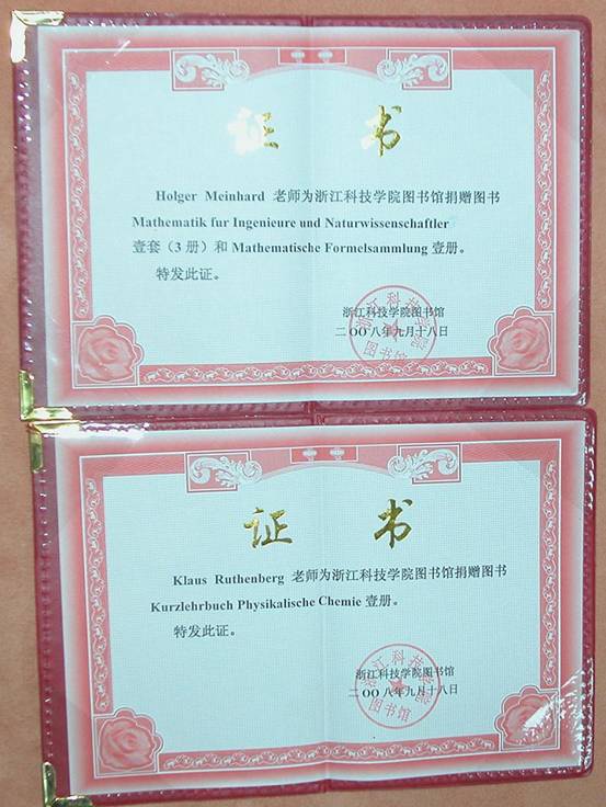教授向我校图书馆赠送了五本德国出版的数学和物理化学教课书。