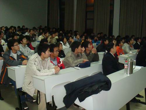 李教授以近代物理突破对人类文明的影响的科学观为切入点,以相对论和量子论的形成过程对二十世纪科学发展的影响,以及爱因斯坦、波尔、狄拉克等著名物理学家的贡献为线索,详述了近代物理原理在现代科学技术中的奠基性应用。以原子弹爆炸成功、微电子技术形成、嫦娥奔月、生命中的物理现象等典型事例为依据,诠释了“改变世界的物理学”、“科学引领文明”的科学命题。报告深入浅出,把高深的近代物理理论作了形象而直观的描述,受到师生的热烈欢迎。