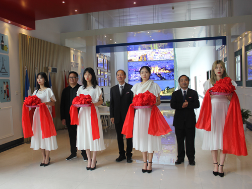 张掬婴简单介绍了学院形象墙、校友墙、中法国际文化廊建设情况和功能。随后,周加敏、陶祥兴、王曦为形象墙、校友墙揭牌剪彩;周加敏、陶祥兴、姚瑞泉为中法国际文化廊揭牌剪彩。